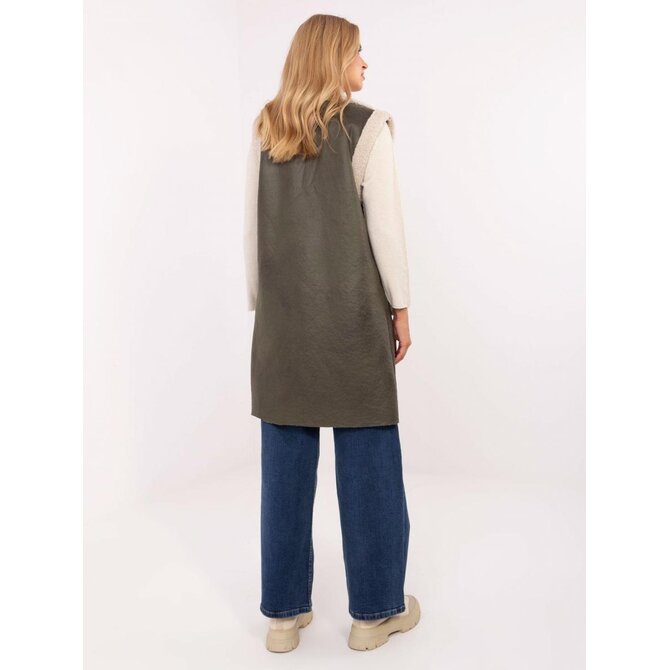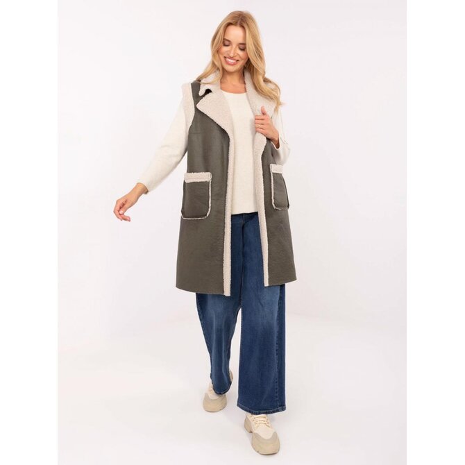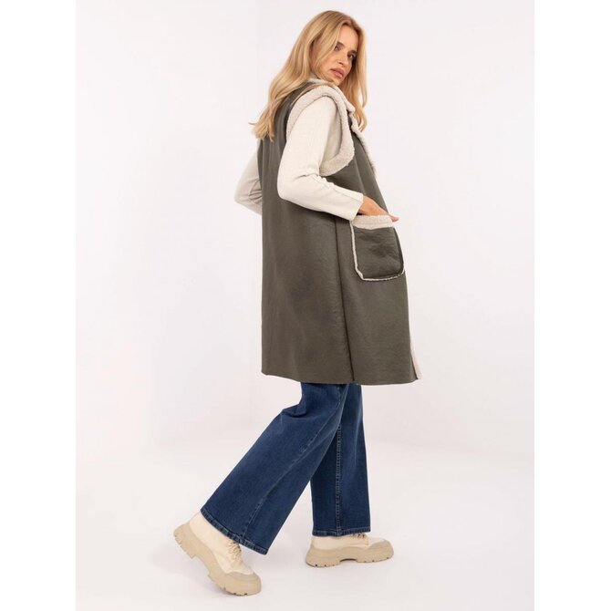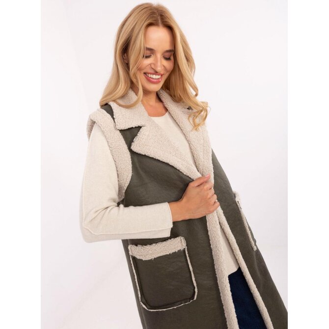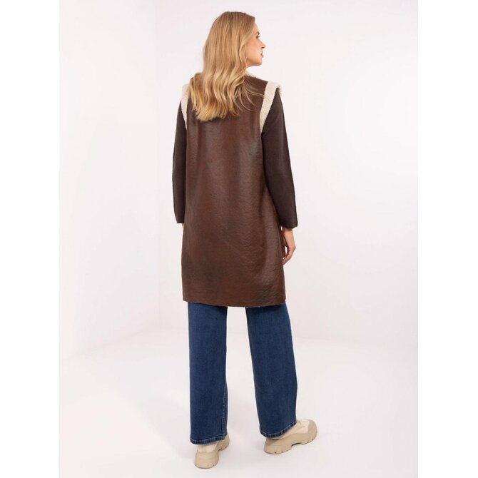 Hnědá dlouhá vesta; imitace ovčí kůže