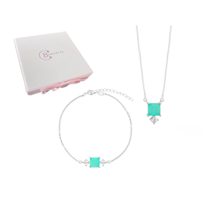 Set Green Glow retizek a naramek stribro 925 stříbrná, stříbro