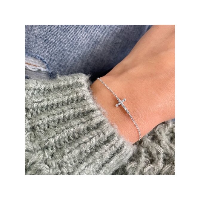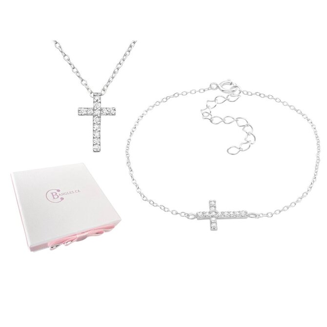 Set náramek Křížek se zirkony + řetízek Křížek + dárková krabička 2986 stříbrná, stříbro