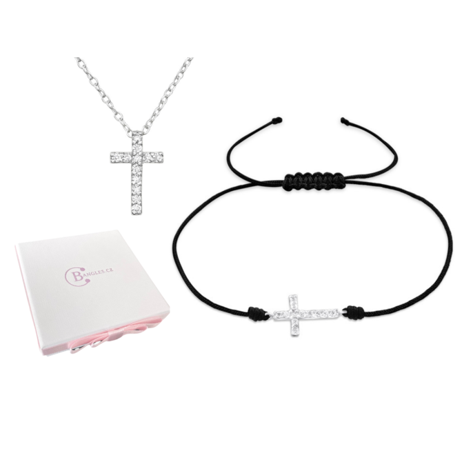 Set náramek + řetízek Křížek + dárková krabička 2278 stříbrná, stříbro