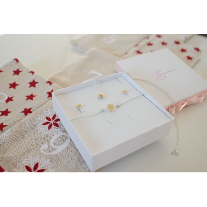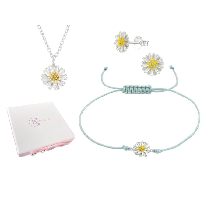 Set náramek + řetízek + náušnice Kopretina + dárková krabička 2587 stříbrná, stříbro