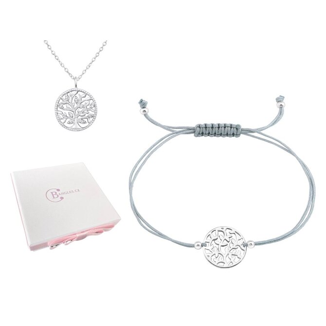 Set náramek + řetízek Strom života + dárková krabička 2284 stříbrná, stříbro