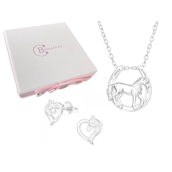 Set řetízek Kůň & Podkova + náušnice + dárková krabička 2311 stříbrná, stříbro