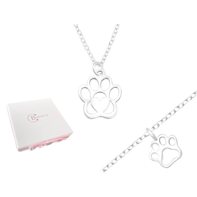 Set řetízek + náramek Tlapka + dárková krabička 2805 stříbrná, stříbro