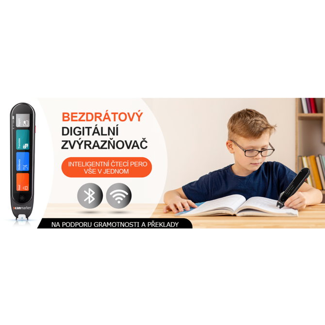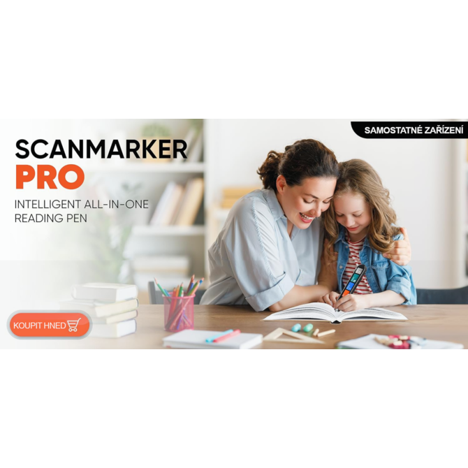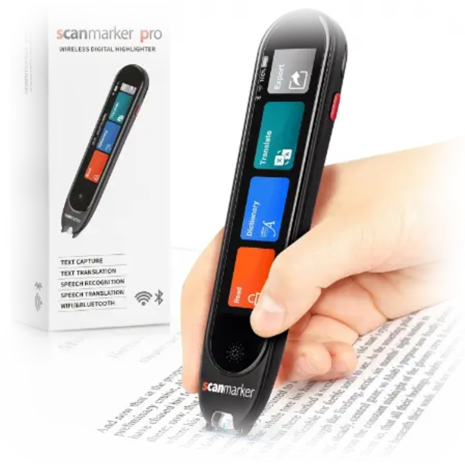 Scanmarker Pro je bezdrátové čtecí pero, které poskytuje vysoce kvalitní převod textu na řeč při skenování. Ve spojení s webovou aplikací Scanmarker Pro a jejími integrovanými výukovými nástroji poskytuje dokonalou podporu čtení a pomáhá budovat dovednosti pro samostatné čtení. Scanmarker Pro je efektivní čtecí zařízení pro osoby s dyslexií a jinými potížemi se čtením; naším cílem je pomoci každému uživateli stát se samostatným čtenářem.