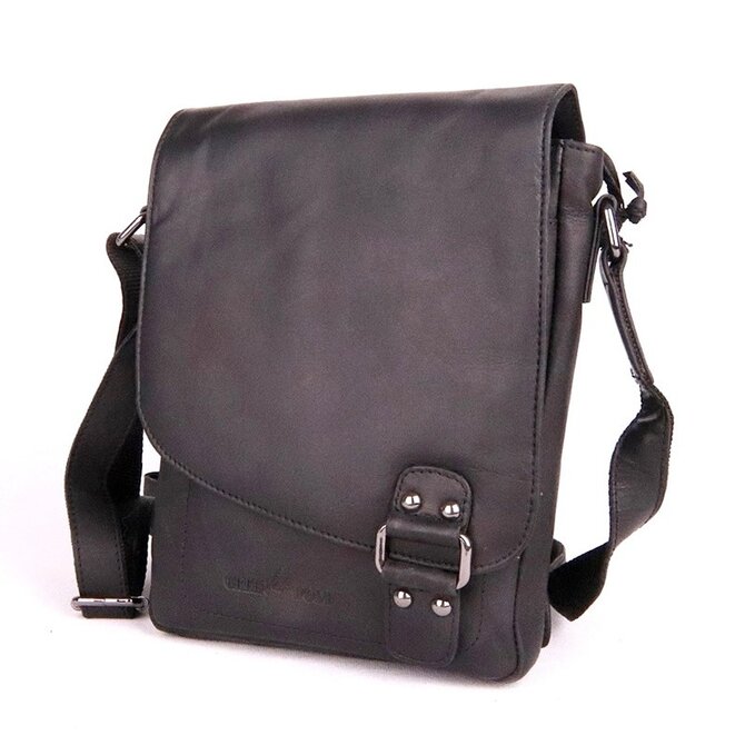 Středně velká černá kožená crossbody taška GreenWood no. 834 černá, kůže