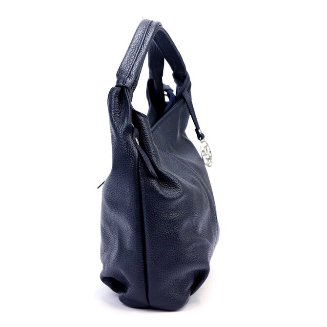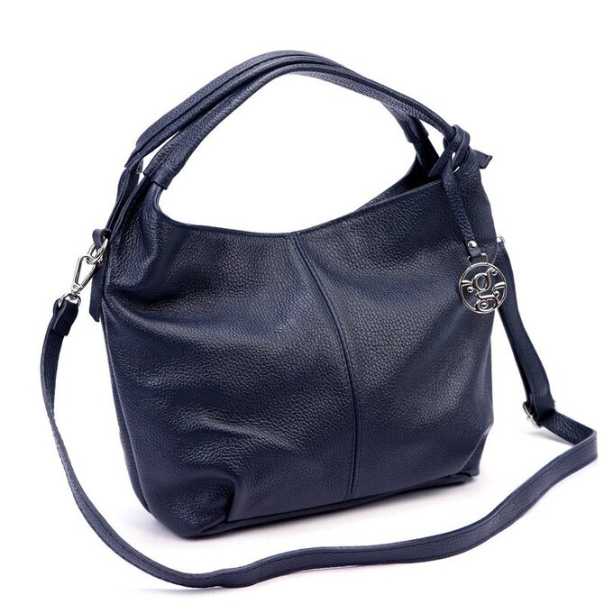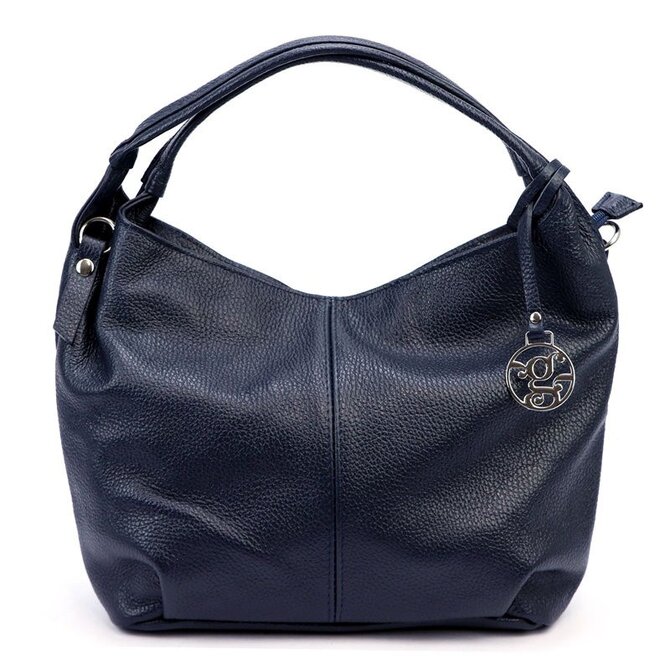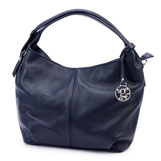 Středně velká kožená modrá kabelka na rameno Gregorio no. 37 tmavěmodrá, kůže