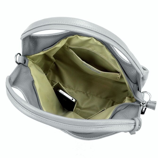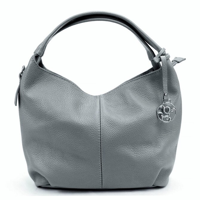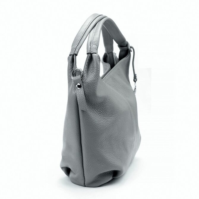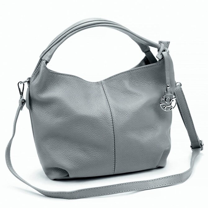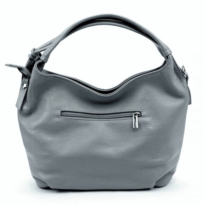 Středně velká kožená šedá kabelka na rameno Gregorio no. 37 šedá, kůže