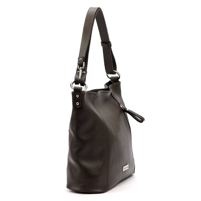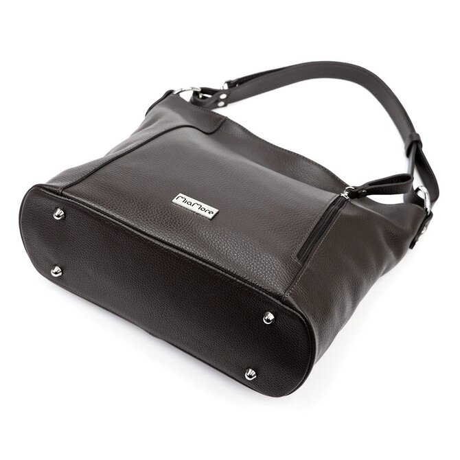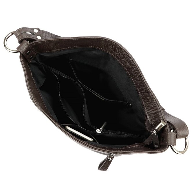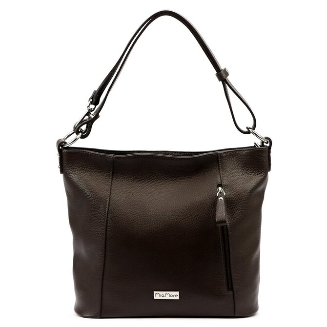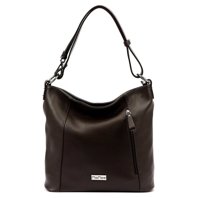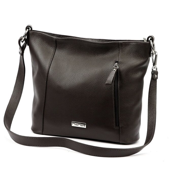 Středně velká kožená tmavěhnědá kabelka na rameno i crossbody MiaMore 145 tmavěhnědá, kůže