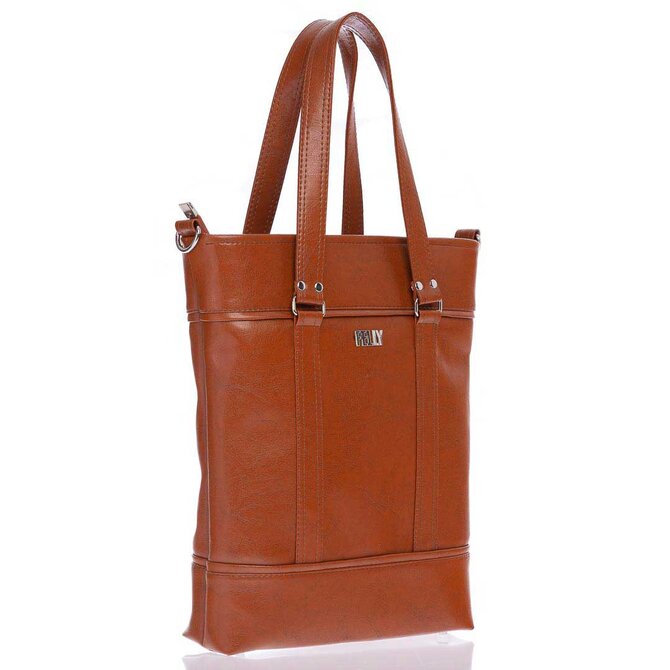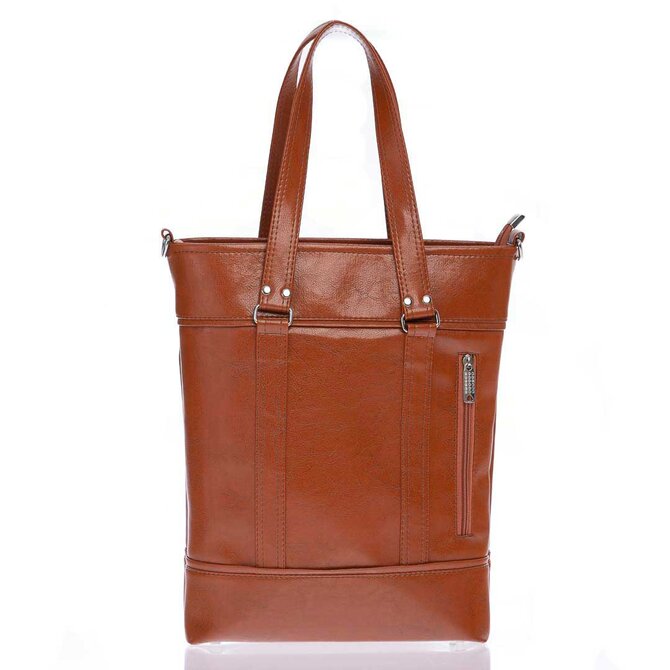 Střední kabelka shopper CELIE lesklá koňaková Hnědá, Medium