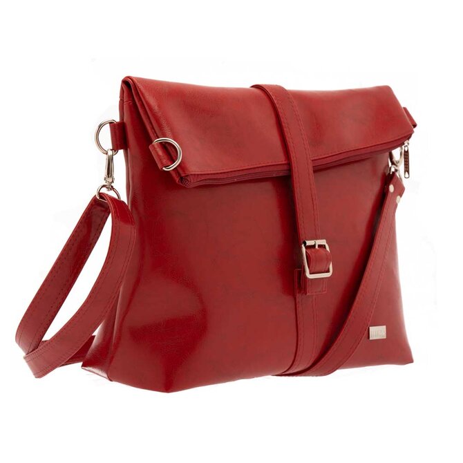 Střední překlápěcí kabelka JELAlesklá malinová Červená, Medium