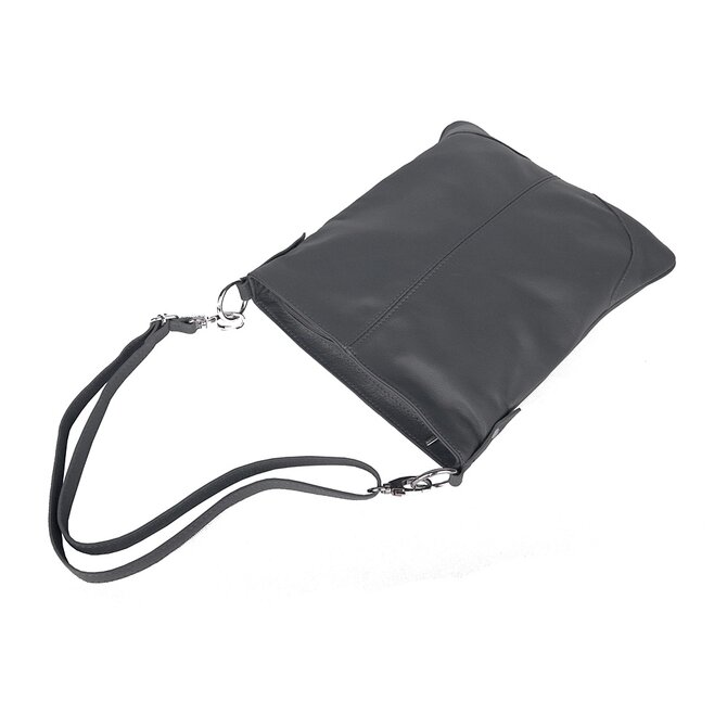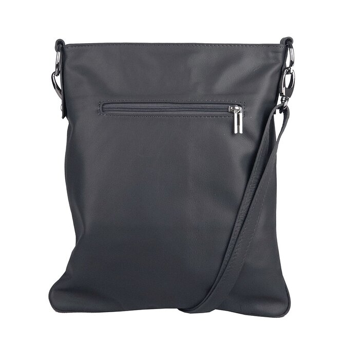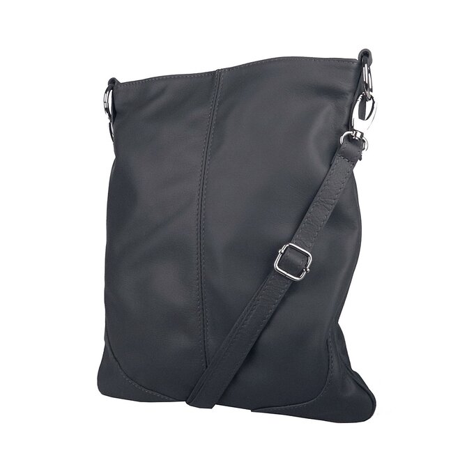 Střední/velká tmavěšedá kožená crossbody kabelka Vera Pelle no. 5509 NEW tmavěšedá, kůže