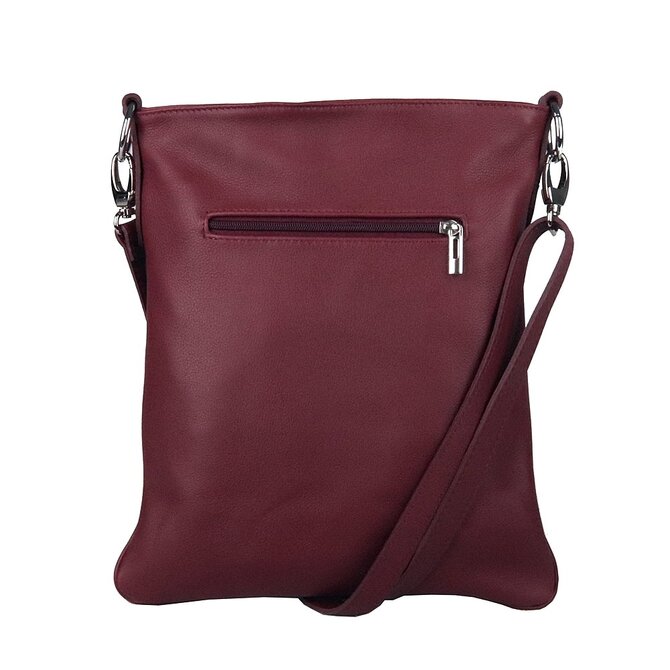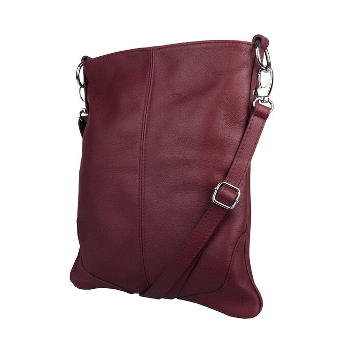 Střední/velká vínová kožená crossbody kabelka Vera Pelle no. 5509 NEW vínová, kůže