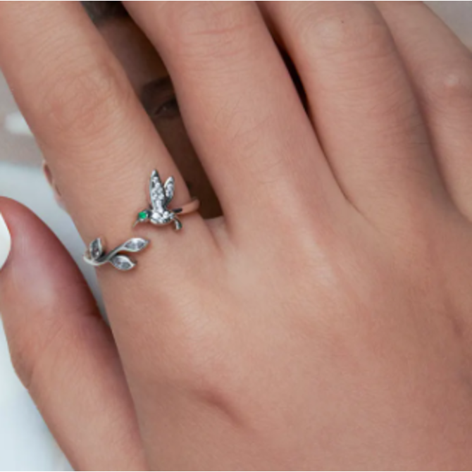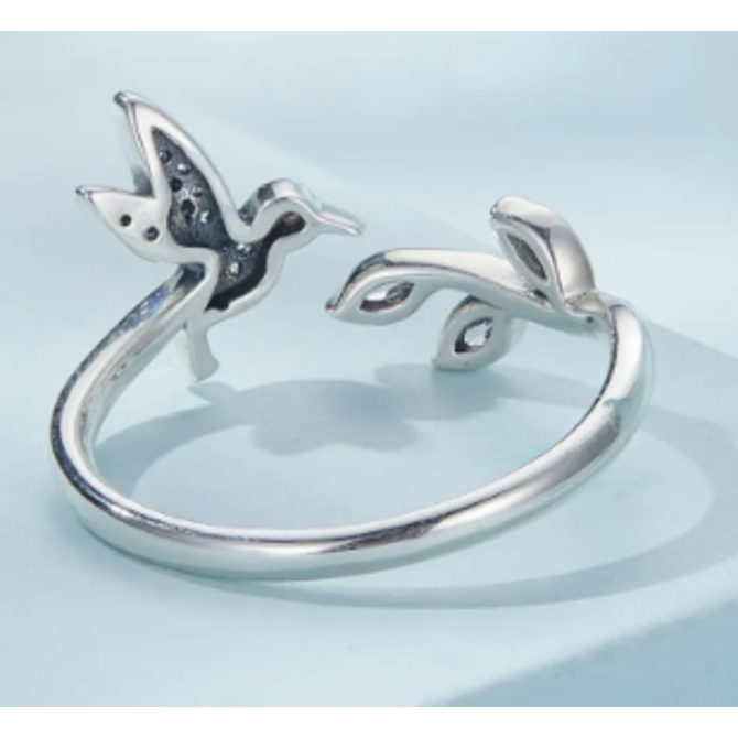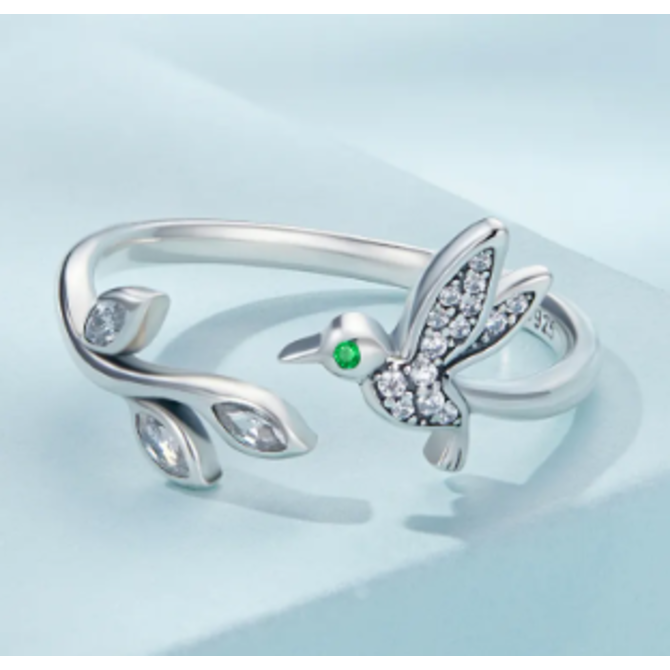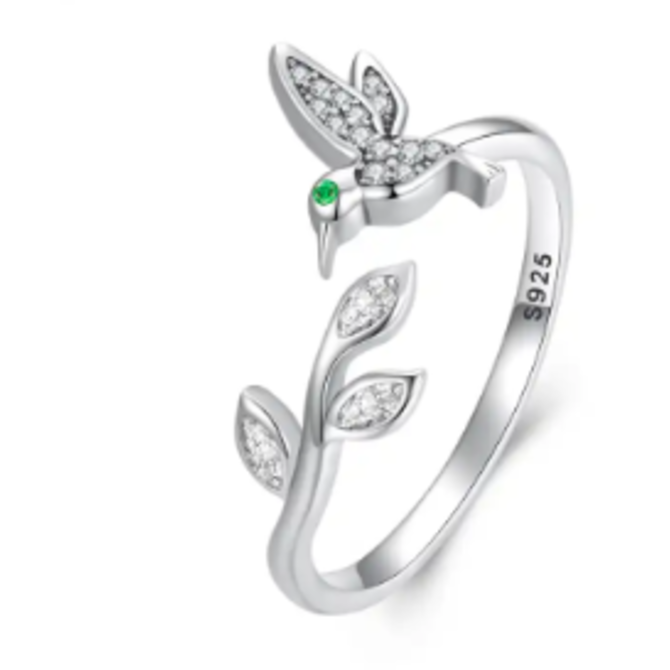 Stříbrný otevřený prsten kolibřík stříbrná , stříbro Ag 925/1000