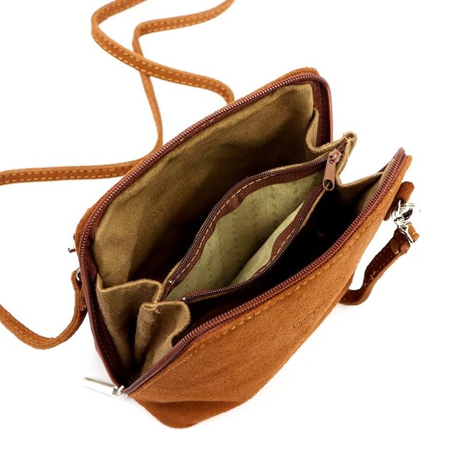 Světlehnědá malá kožená - semišová - crossbody kabelka no. 03 světlehnědá, kůže