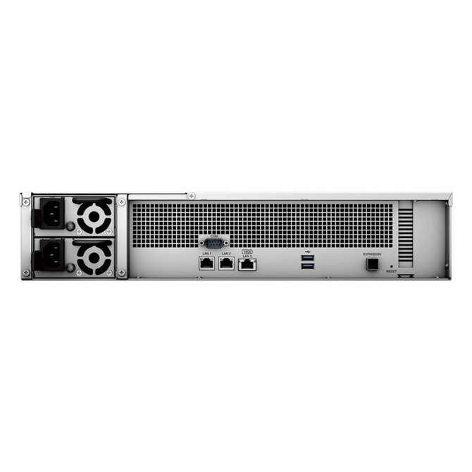 NAS All-in1 RAID server pro 12x SATA HDD (s RX1223RP až 24 disků), Rack 2U provedení, Hot-Swap disky s možností on-line upgrade kapacity+RAID migrace, RAID: Basic/JBOD/0/1/5/5+Spare/6/10 + Hybrid RAID, EXT4+Btrfs. File server (+iSCSI Target), Print/FTP/Mail/Backup server (+rsync), Media server (DLNA/uPNP, iTunes...), Download station, Photo Station+video+blog, Web Station (PHP a MySQL), Dohledové centrum (max. 50 IP kamer, detekce pohybu, notifikace...), iPhone/Android/WP foto/audio streaming a vzdálený dohled, Firewall, široká podpora OS, sdílení USB tiskárny a USB disků. Podpora pro virtualizaci (VMware vSphere with VAAI, Citrix Ready, OpenStack ), podpora Windows Domain (ADS&NT4), Secure HTTP/FTP, Secure Network Backup, AES 256bit šifrování svazku. Propracovaná lokalizovaná správa a zálohování přes http(s). AMD Ryzen V1780B, 4-core 3.35 / 3.6 (turbo) GHz, RAM DDR4 ECC 8GB (max. 32GB), 1x 10Gb LAN, 2x 1Gb LAN, 2x USB USB 3.2 Gen 1, 1x Exp. port, 1 x PCIe Gen3 x8 slot (x4 link) LAN nebo kartu pro SSD M2. Přenosová rychlost až 3500MB/s čtení/1700MB/s zápis (při zapojení 10Gb LAN). Možnost rozšíření svazku pomocí RX1223RP (+ 12 disků). Možnost časovaného zapnutí/vypnutí, WakeOnLAN, podpora UPS. Pasivní chladič procesoru, redundantní systémový ventilátor. Operační spotřeba / HDD v hibernaci 114,86/42,33W. Redundantní zdroje. Špičková výkonnost, ideální jako náhrada serveru pro firemní nasazení.