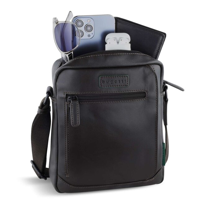 Taška přes rameno Bugatti Clark cross M hnědá, Kůže