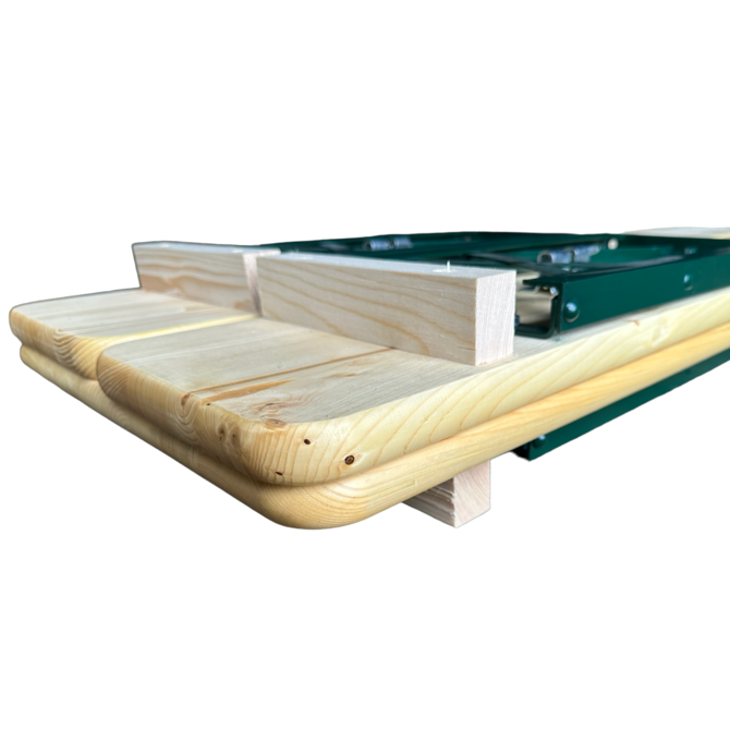 Dřevěná část zahradní soupravy je vyrobena z kvalitní smrkové spárovky a je standardně 3x lakována bezbarvým lakem. Silná smrková nebo jedlová spárovka sloužící jako povrchová deska stolu i lavice má fungicidní úpravu proti plísním. Velmi snadno se čistí. Tři vrstvy lakování jsou navíc vytvrzeny v UV tunelu. V tunelu lak získá maximální tvrdost a poskytuje dřevěnému povrchu přívlastek "hydrofobní - voděodolný". Pivní sestavu proto můžete použít jak v interiéru, tak venku a vůbec nevadí, když Vám zmokne. Nejsou-li porušeny vrchní vrstvy lakování oděrkami a hlubokými rýhami, dešťová voda se do dřeva nedostane.