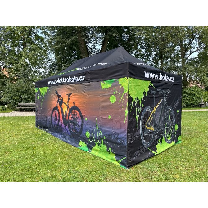 VARIANTA 2- střecha s kompletním celopotiskem vrchní části i volánů + 2x bočnice 3m + 2x bočnice 6m s kompletním jednostranným celopotiskem