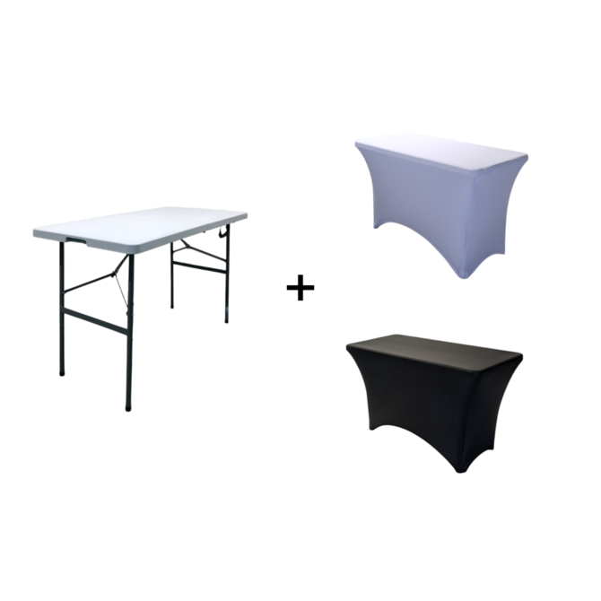 TENTino Skládací stůl 122x60 cm PŮLENÝ, bílý, STL122P Barva ubrusu: ČERNÁ / BLACK