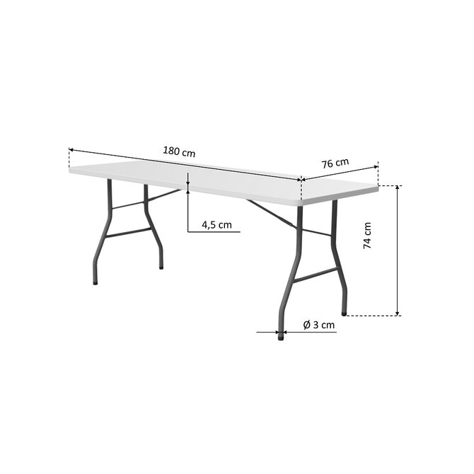 TENTino Skládací stůl 180x76 cm CELÝ, bílý