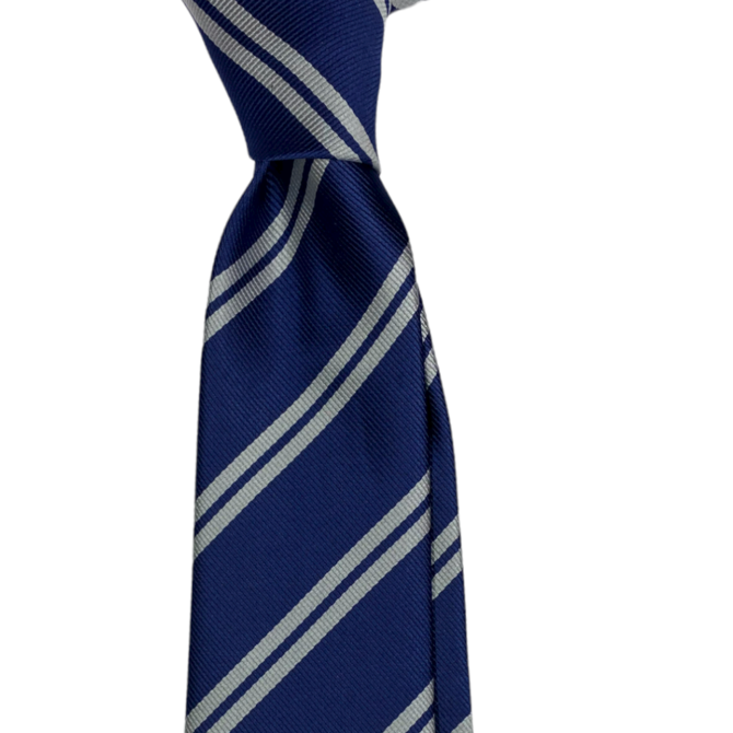 Tmavě modrá kravata s dvojitými stříbrnými proužky Stříbrná, Polyester
