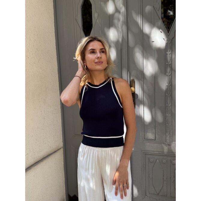 • barva tmavě modrá/ světle hnědá/ krémová s černým lemem