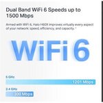 Získejte přístup k dvoupásmové Wi-Fi 6 s rychlostí až 1 201 Mb/s při 5 GHz a 300 Mb/s při 2,4 GHz. Výkonné zesilovače signálu se postarají o silné a stabilní Wi-Fi připojení. Technologie Beamforming koncentruje signál přímo k zařízení. Jednotky Halo vám zkrátka ulehčí práci, ke které potřebujete kvalitní internet bez lagů.