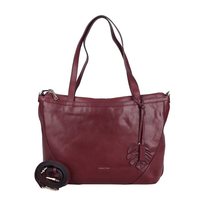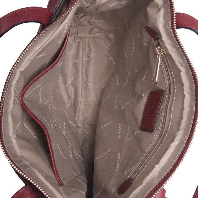 Tříoddílová velká značková tmavěčervená kožená kabelka na rameno Gianni Conti no. 494 tmavěčervená, kůže