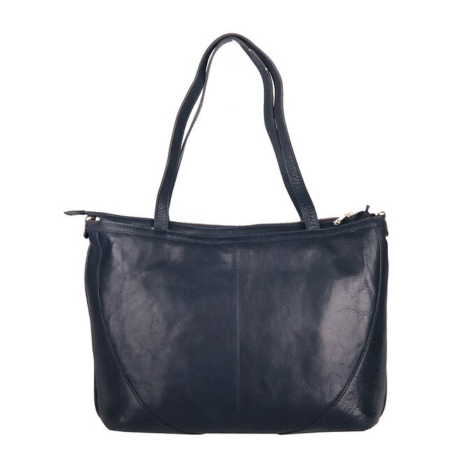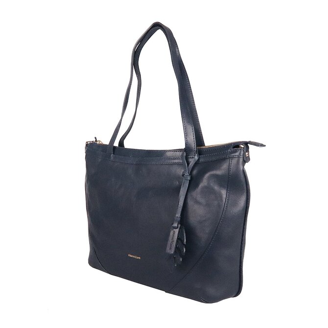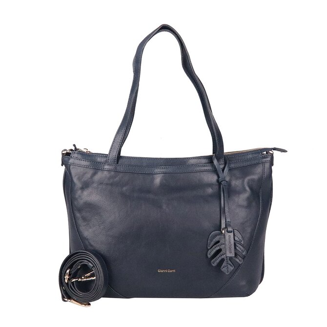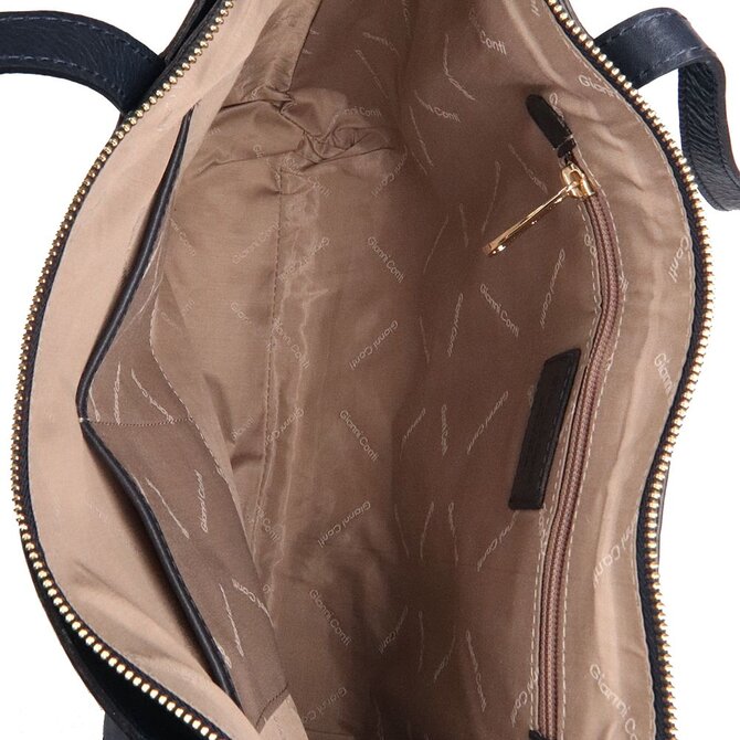 Tříoddílová velká značková tmavěmodrá kožená kabelka na rameno Gianni Conti no. 494 tmavěmodrá, kůže
