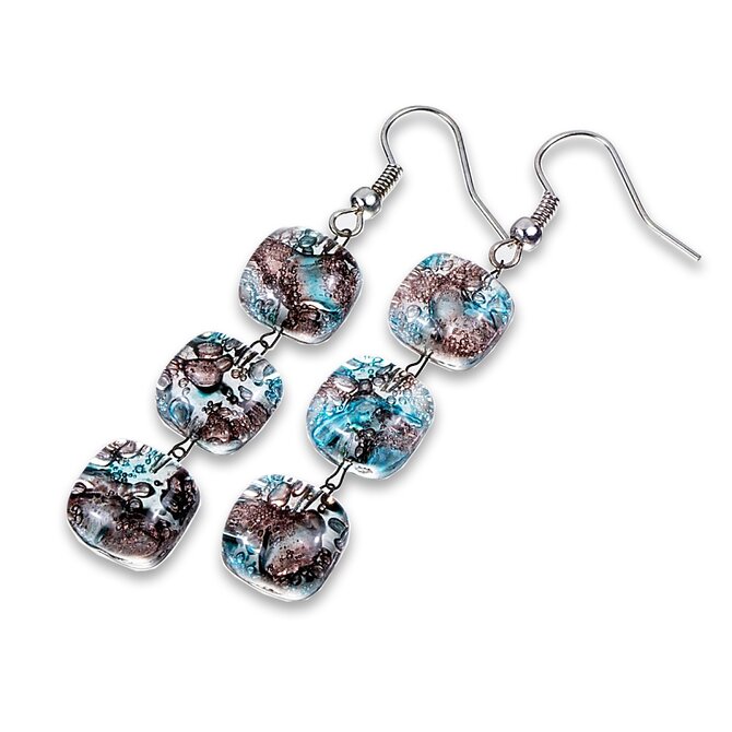 WAGA - Skleněné náušnice tyrkysovohnědé MEMPHIS N0402