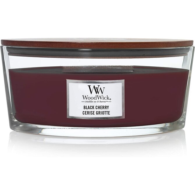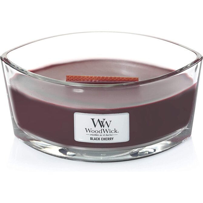 WoodWick vonná svíčka s dřevěným knotem Elipsa Black Cherry 453,6 g Červená