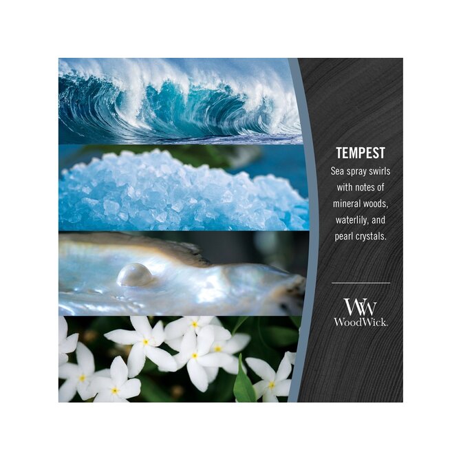 WoodWick vonná svíčka s dřevěným knotem Elipsa Tempest 453,6 g Modrá