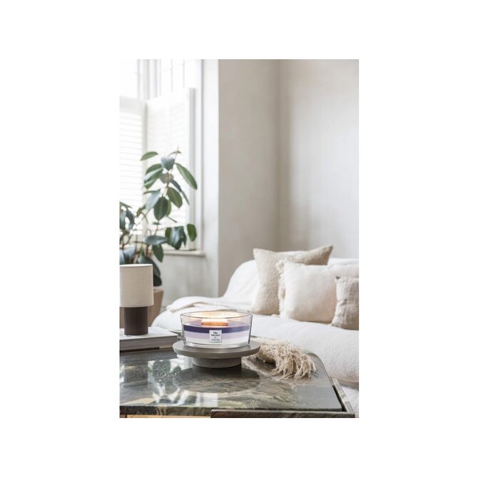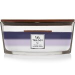 WoodWick vonná svíčka s dřevěným knotem Elipsa Trilogy Evening Luxe 453 g Fialová