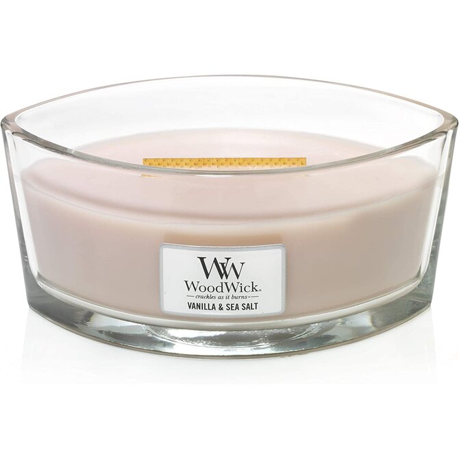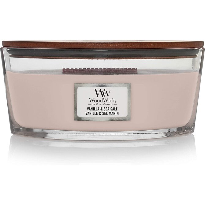 WoodWick vonná svíčka s dřevěným knotem Elipsa Vanilla & Sea Salt 453,6 g Růžová