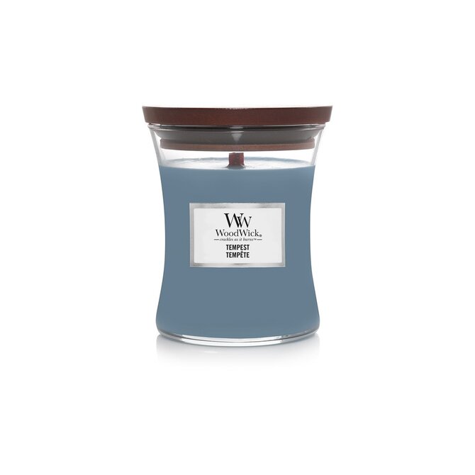 WoodWick vonná svíčka s dřevěným knotem střední Tempest 275g Modrá