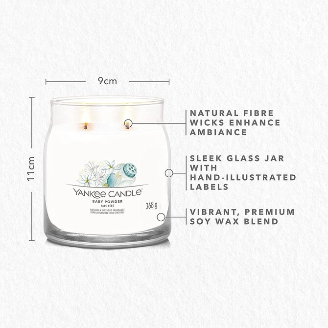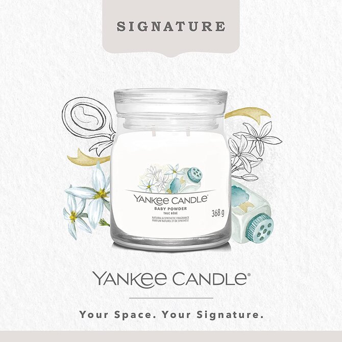 Yankee Candle vonná svíčka Signature ve skle střední Baby Powder 368g Bílá
