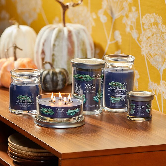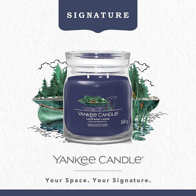 Yankee Candle vonná svíčka Signature ve skle střední Lakefront Lodge 368g Modrá