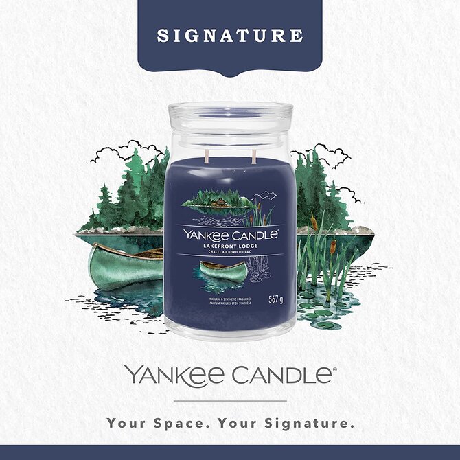 Yankee Candle vonná svíčka Signature ve skle velká Lakefront Lodge 567g Modrá