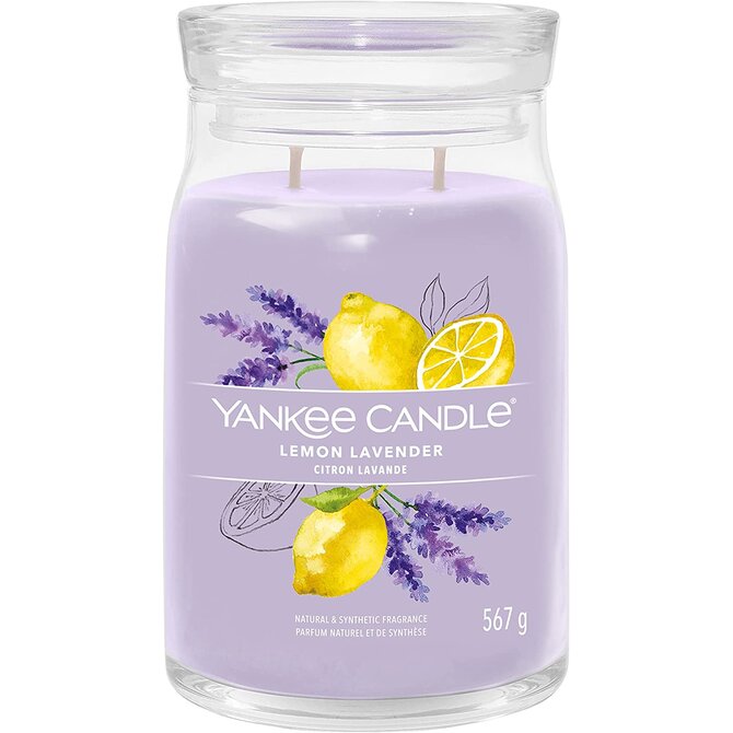 Yankee Candle vonná svíčka Signature ve skle velká Lemon Lavender 567 g Fialová