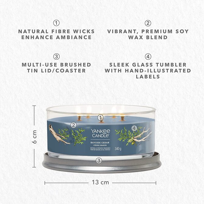 Yankee Candle vonná svíčka Tumbler 5 knotů Bayside Cedar 340 g Modrá