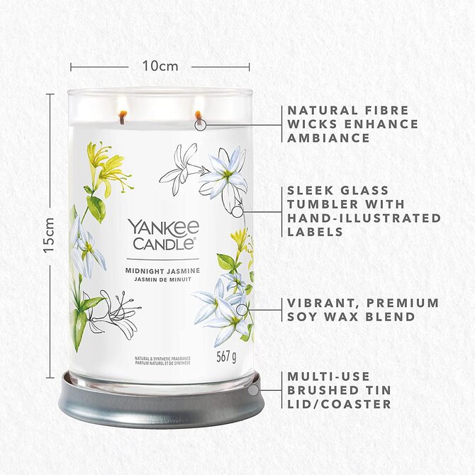 Yankee Candle vonná svíčka Tumbler ve skle velká Midnight Jasmine 567g Černá
